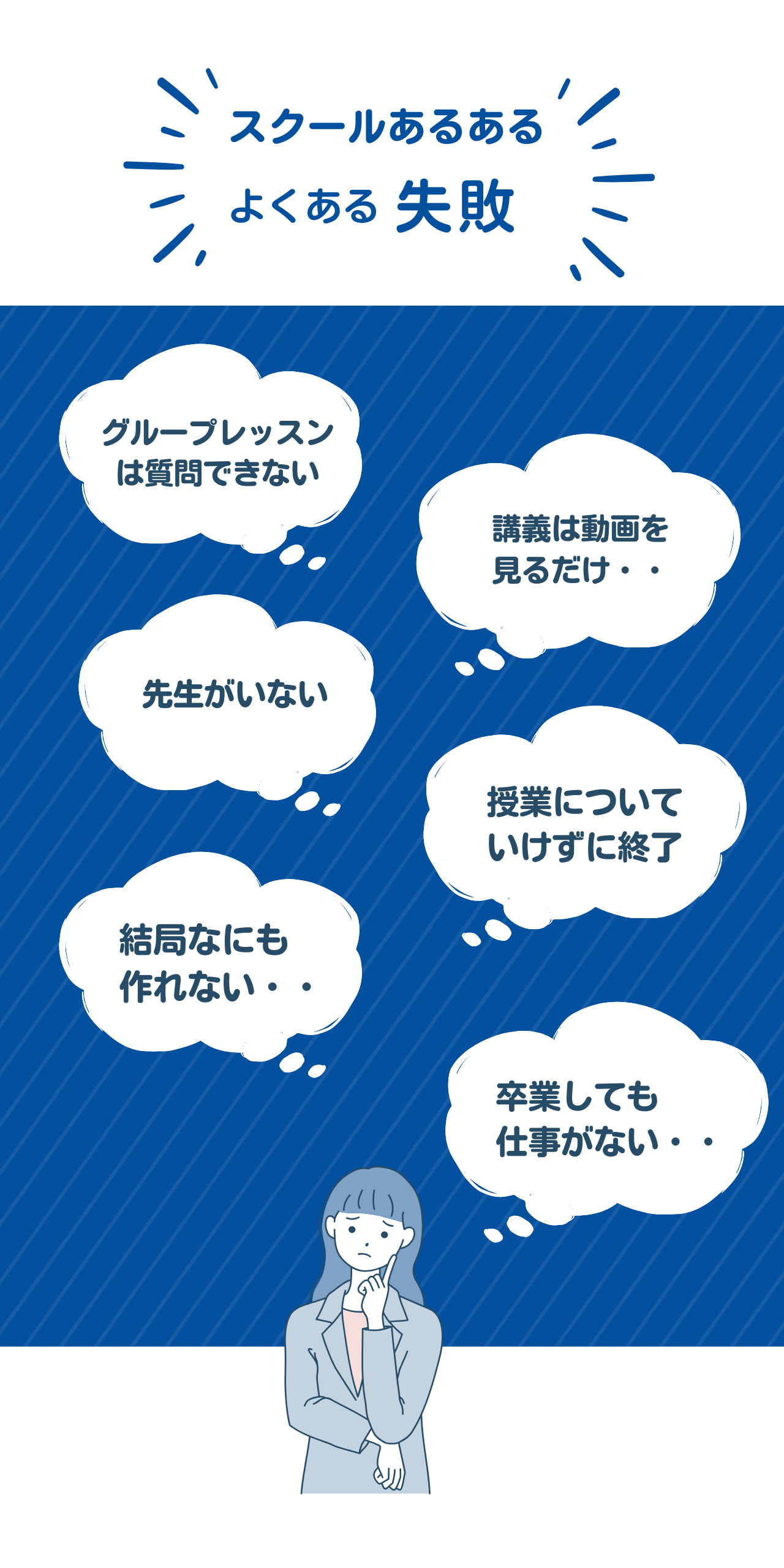 自分の性格上、オンラインの動画講座やグループレッスンでは上達できなと思って教室に通うのは諦めていたところ個人レッスンで教えていただけるこちらの講座をみつけてすぐにお問い合わせあしました。卒業制作では、先生と一緒に、就職先のアドバイスいただきならがら制作し、おかげ様で無事に面接までこぎつけることが出来ました。短い期間でしがら、学校のようで部活のようでとても楽しい時間になりました。